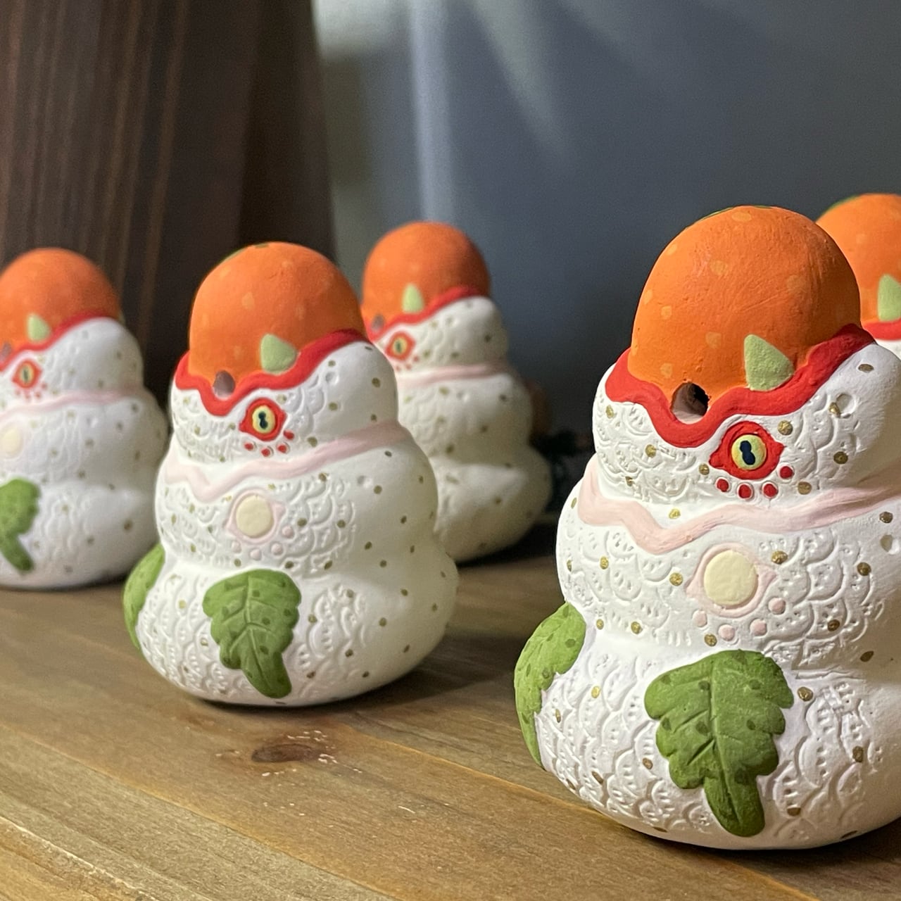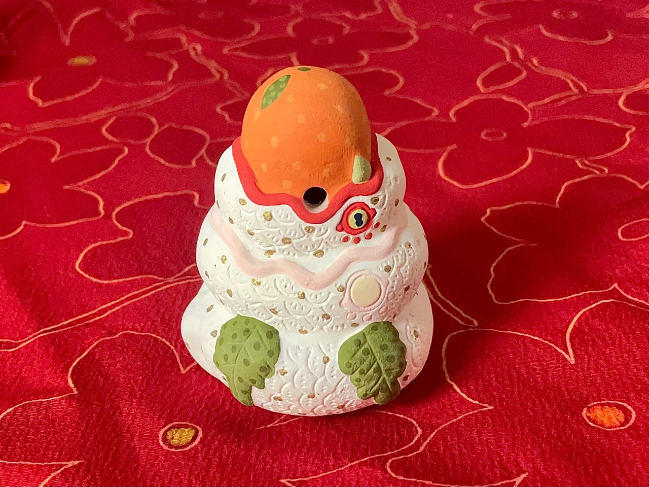 白蛇のボディに金のドットをあしらって、お正月飾りにぴったりな華やかな土鈴になりました。